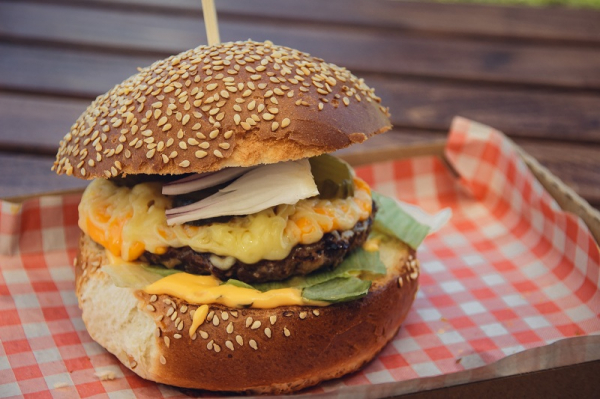 buci marhahúspogácsa jégsaláta csemegeuborka lilahagyma cheddar sajt trappista sajt hamburgerszósz